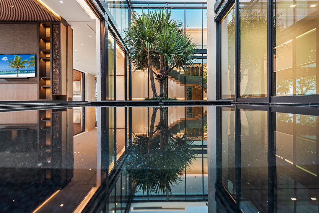 The nine-bedroom home, with plenty of space for all the Beckhams to stop in, is the epitome of glamorous coastal living. As well as 124 feet of water frontage, the lush property is apt for indoor/outdoor family time with an outdoor kitchen, marble patio, infinity pool, and rooftop deck. It also has reflecting ponds, shimmering in the sun and beautifully mirroring the home’s ample glass.