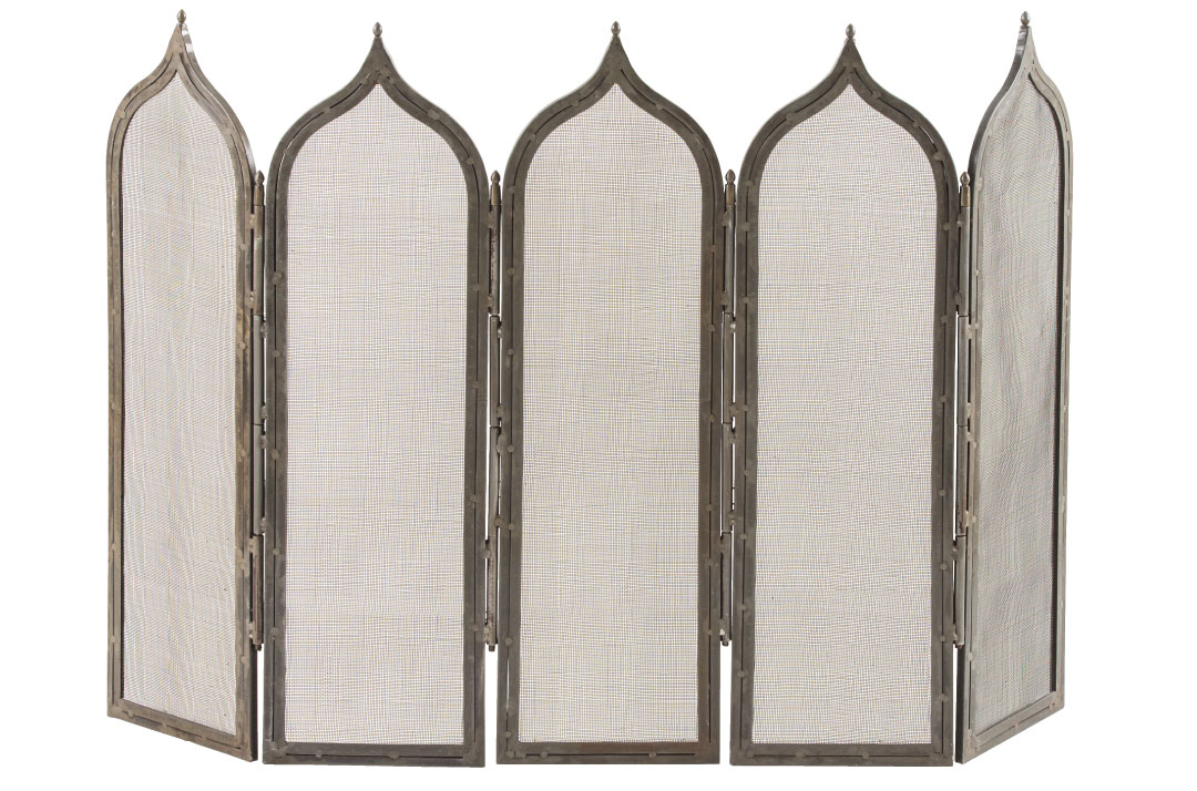 Five Gothic-inspired metal mesh panels give the Georgie screen a romantic look. $1,800, through Plantation, 415-565-0888, plantationdesign.com, arteriors.com.