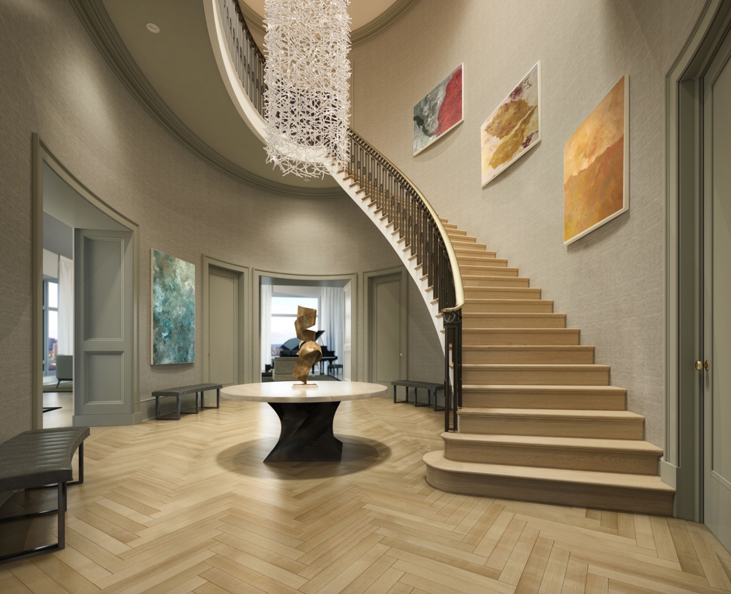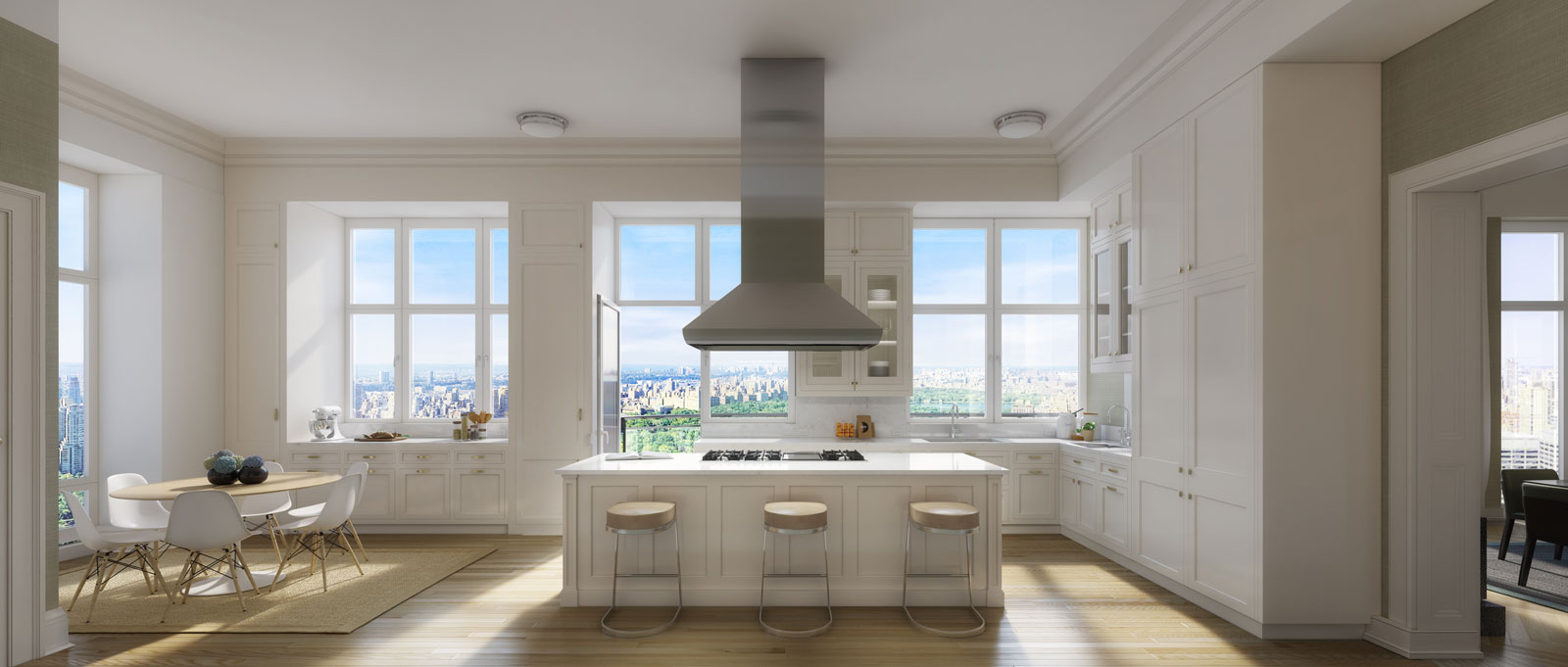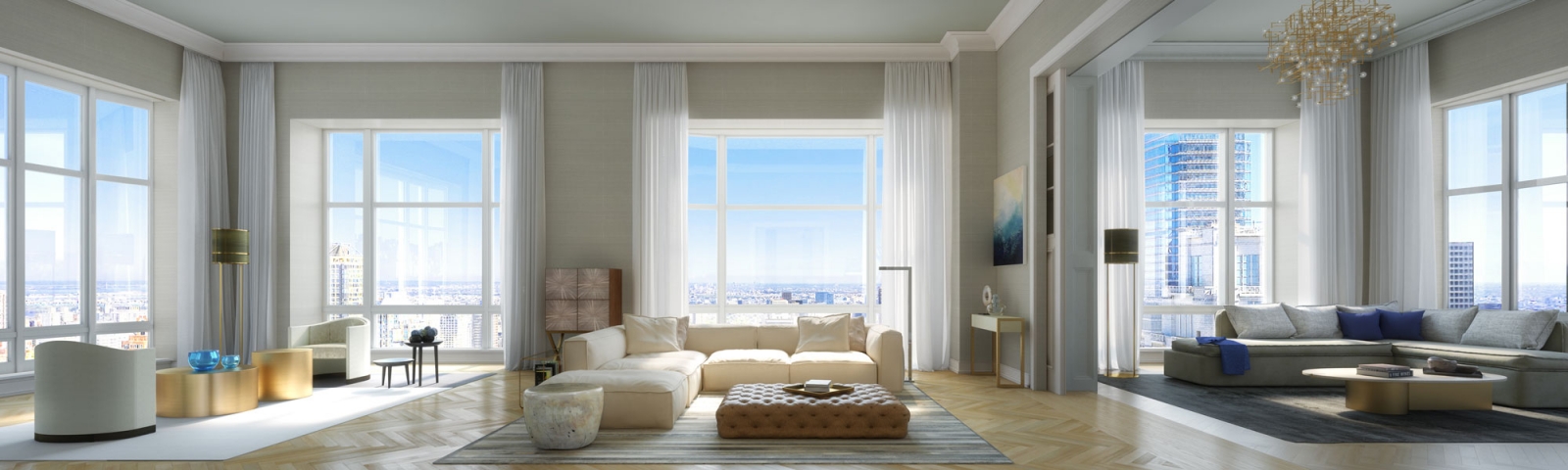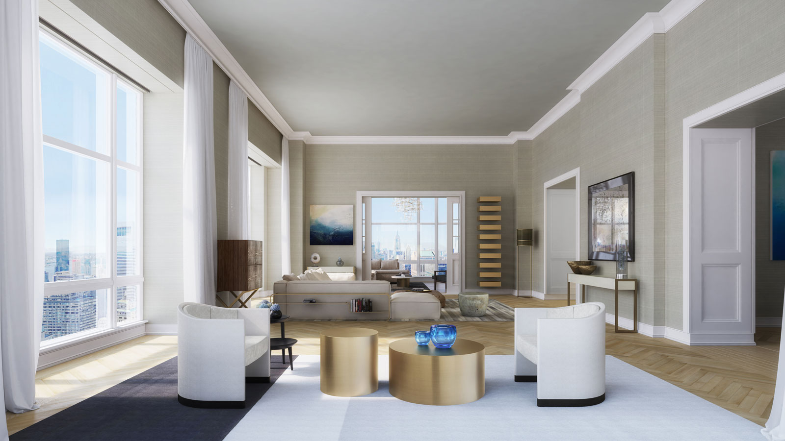 The home contains 6 bedrooms across 9,138 square feet of interior living space and 2 floors, which are connected by a sweeping central staircase. According to 520 Park’s website, the apartment is comparable to a “city villa in the sky” and additionally features a 279-square-foot terrace that frames views of Midtown to the south and Central Park to the north.