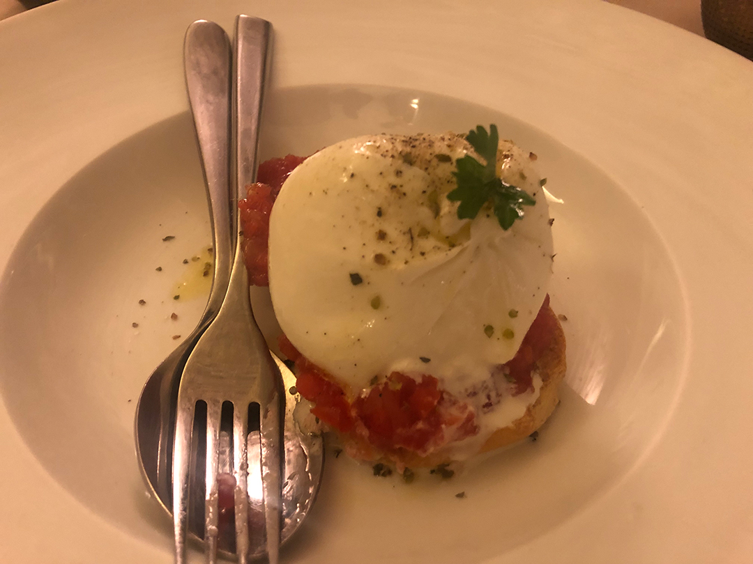A delicious dinner at Hostaria Uva Rara, a farmhouse-turned-restaurant Fresh burrata was enjoyed and shared with the group.