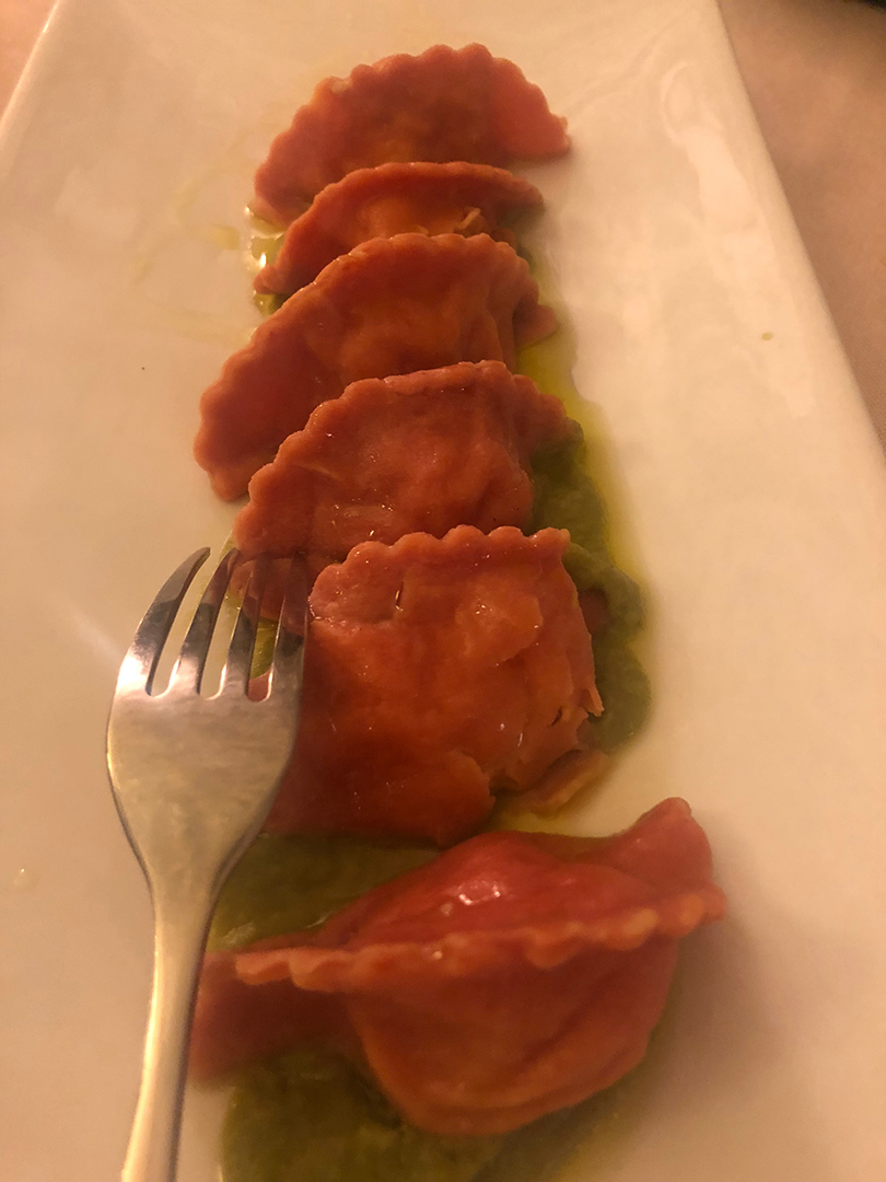 Delicious ravioli from Trattoria del Gallo with fresh spinach and ricotta.