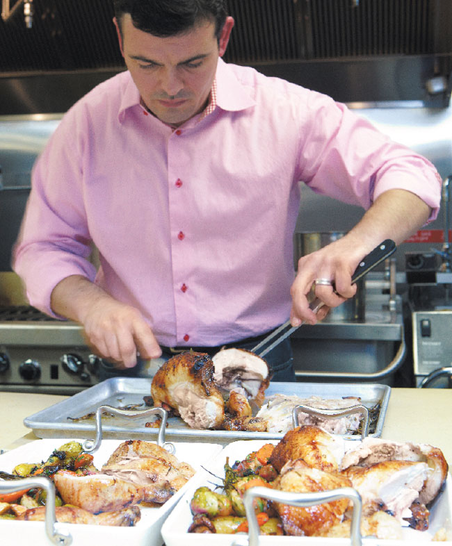 Kitchen Magic | After 15-20 minutes in the oven (when the skin starts to turn brown), Kieffer bastes the chicken with honey and ginger every five to seven minutes until it’s juicy, tender and fully cooked.