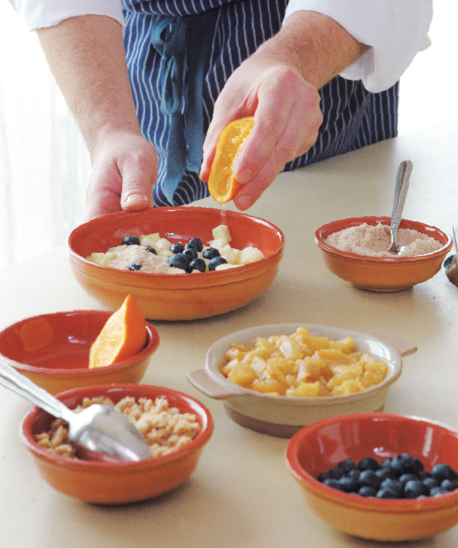 Prep School | The freshest fruits—local pears, green apples, blueberries—plus simple ingredients like orange juice, brown sugar, almond flour and cinnamon are ready to be assembled for dessert.