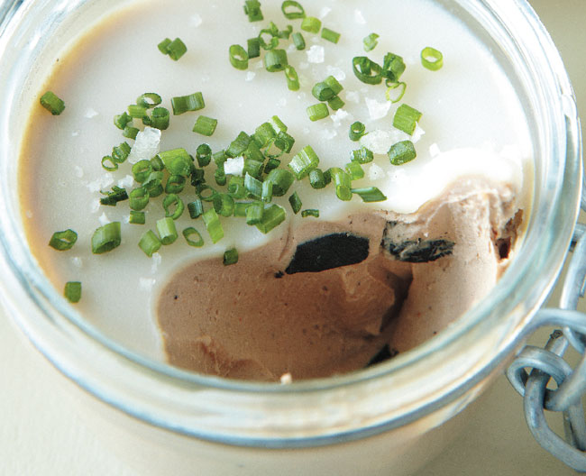 Dine In | To kick off dinner, Kieffer prepared a potted pâté sprinkled with chives.
