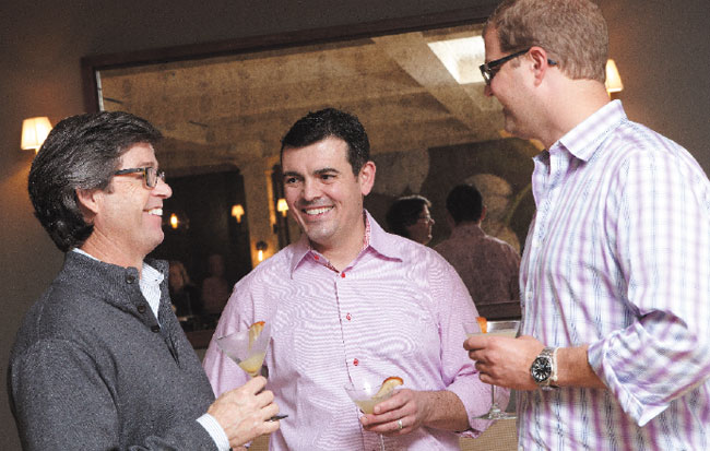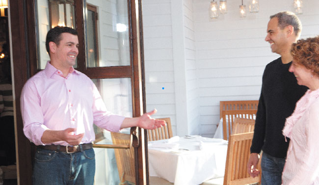 Warm Welcome | The chef shares a laugh with friends Michael Ryan, left, and architect John Parker.