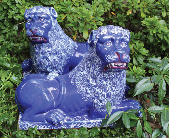 My favorite majolica takes the form of lions, a popular motif of the French and Italian makers. They were typically sculpted in whimsical and almost comical designs that I find irresistible. My majolica lions roam my summer garden, bringing color, humor and joy to all who spy them hiding among the blooms.