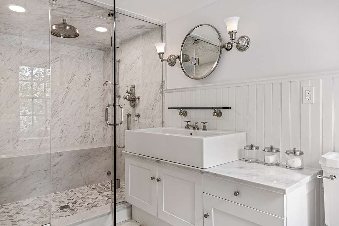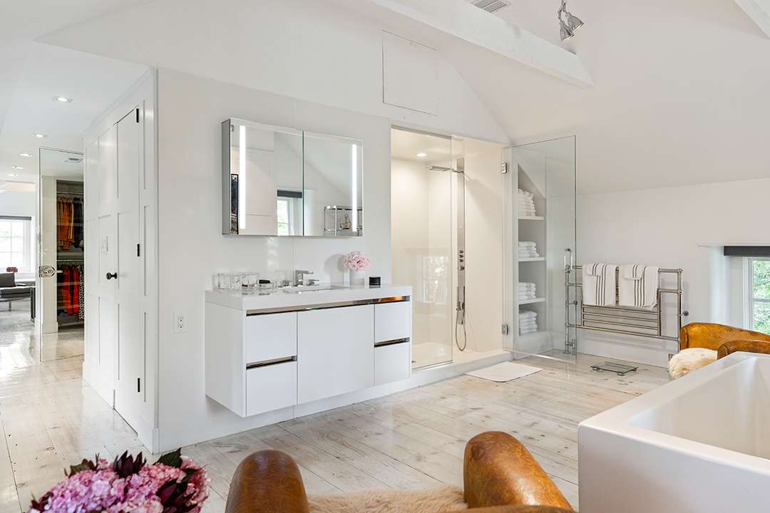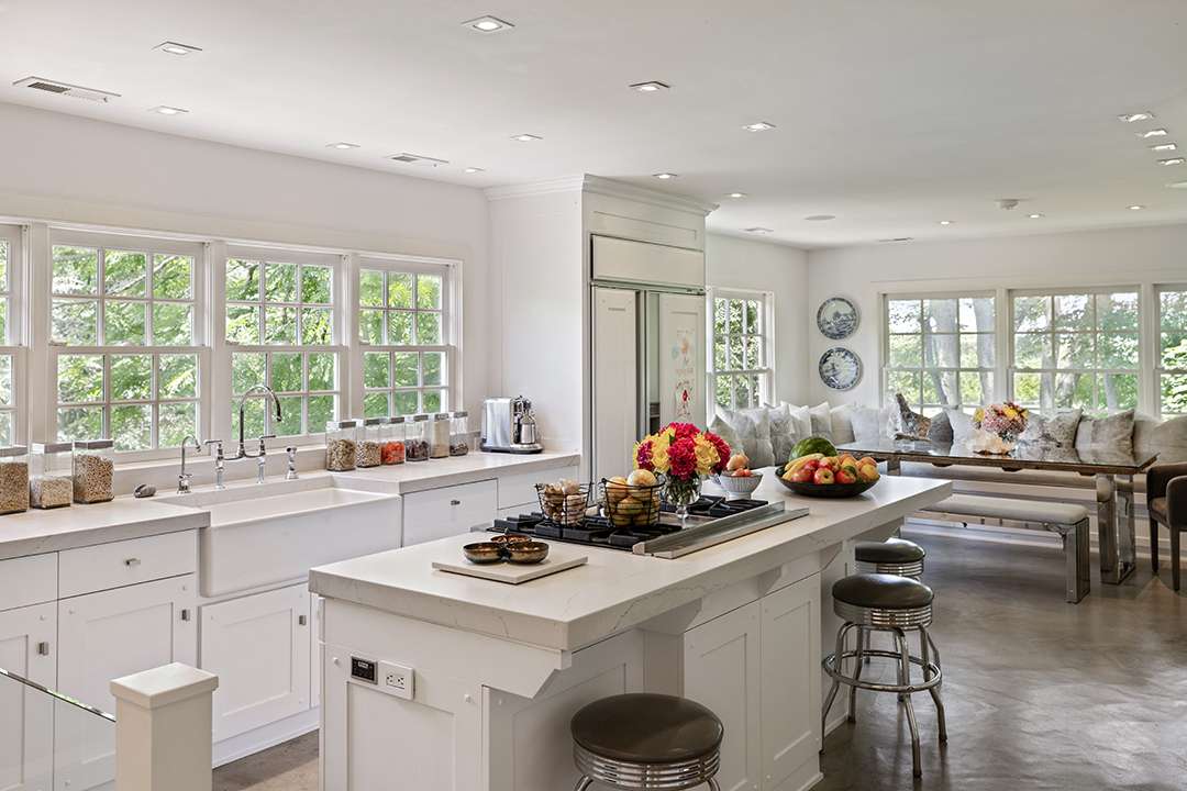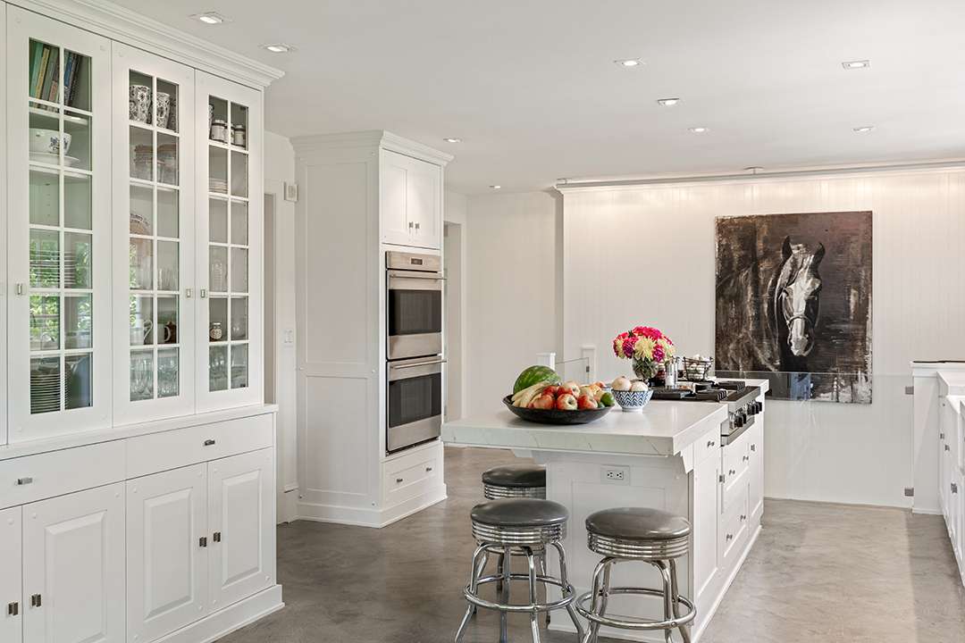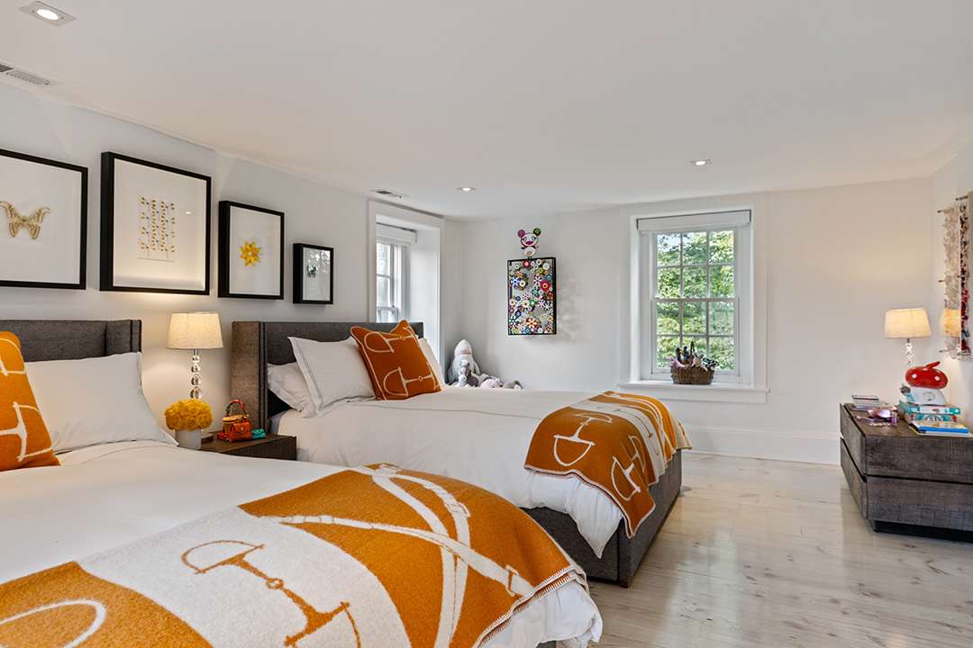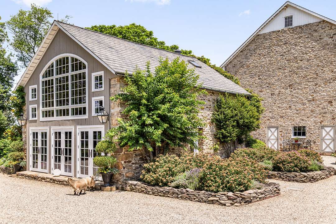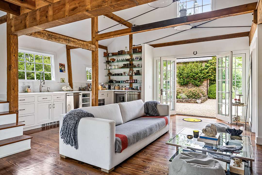 Hadid redesigned the compound, which holds five structures for humans and and one for horses, to increase the property’s unity (and glamour). There’s a circa-1810 stone main house, three guest cottages, and a circa-1776, 8,000-square-foot barn that Hadid transformed into a hub for entertaining and equestrian use. Restored and full of rustic elegance, it offers a cavernous room for hosting as well as 14 stalls, 3 wash stalls, a tack room, a feed room, and more for goats, horses, and any other lucky farm animals that get to live there.
