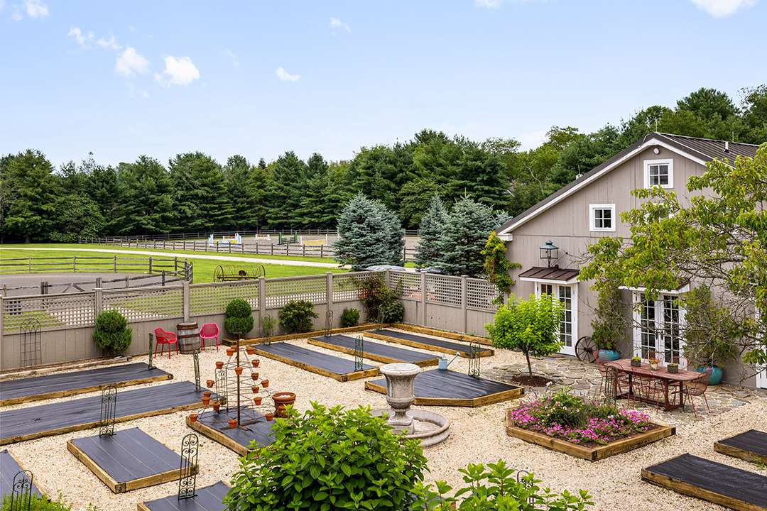 When it comes to other elements people can relish at the secluded farm, which was first deeded in 1682, the list is extensive. Raised vegetable gardens, 3,000+ lavender plants, a meditation labyrinth, a wine and lavender oil cellar, a resort-like pool, and a professional jumping arena all encourage you to slow down and enrich the soul. Or at least, that’s what Yolanda’s children, models Bella Hadid, Gigi Hadid, and Anwar Hadid, could look forward to. The family made many memories at the estate, whether during the uncertain times of the COVID lockdowns, the holidays, or on quiet weekends recharging with farm-to-table meals and long horse rides through the fields.