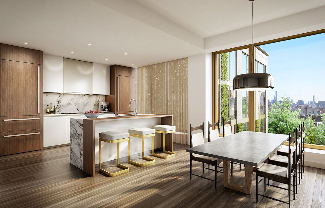 Sales are open at 75 Kenmare, a luxury building in NoLIta that boasts a unique amenity: Lenny Kravitz designed the interiors. The rock ‘n roll icon’s design firm, Kravitz Design, was inspired by NoLIta’s “eccentric downtown vibe” for the design of the units, reports Curbed, and outfitted them in a muted neutral palette that allows high-end finishes such as Calacatta marble countertops, white oak flooring and titanium Travertine to shine. Andre Kikoski Architects is the firm behind the 38-unit building and 6 of those units are currently available with Douglas Elliman’s Fredrik Eklund and John Gomes. Prices vary from about $1.7M for a 1-bedroom with a private terrace to $5.9M for a 1,800-square-foot corner unit.