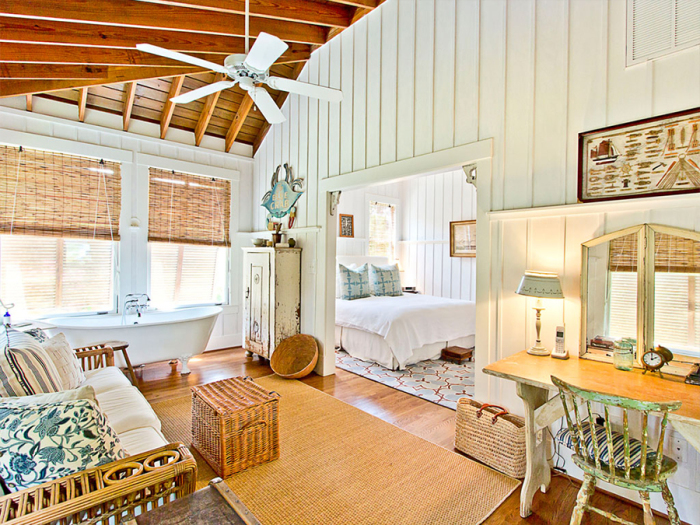 Sandra Bullock’s Tybee Island, GA getaway has just hit the market as a vacation rental, reports Variety. Anyone willing to shell out $1,400/night for a four-night minimum stay can relax in the 3,400-square-foot plantation-style residence she purchased in 2001. The house features a breezy great room with a double-height ceiling and fireplace, a spacious dining room and fully-stocked kitchen, and a main floor master suite with its own sitting room. Two screened-in porches provide panoramic views over the water and step down to the backyard, which features a swimming pool. For those looking for a longer term rental: Sandra Bullock is also offering her Hollywood Hills home for $15,000/month.