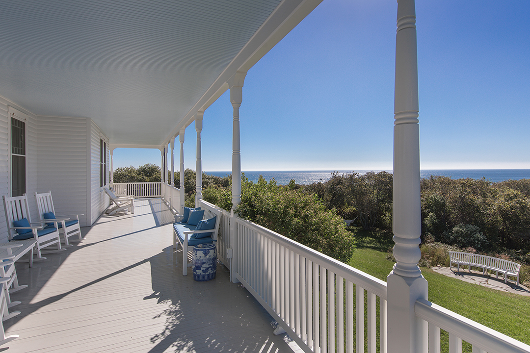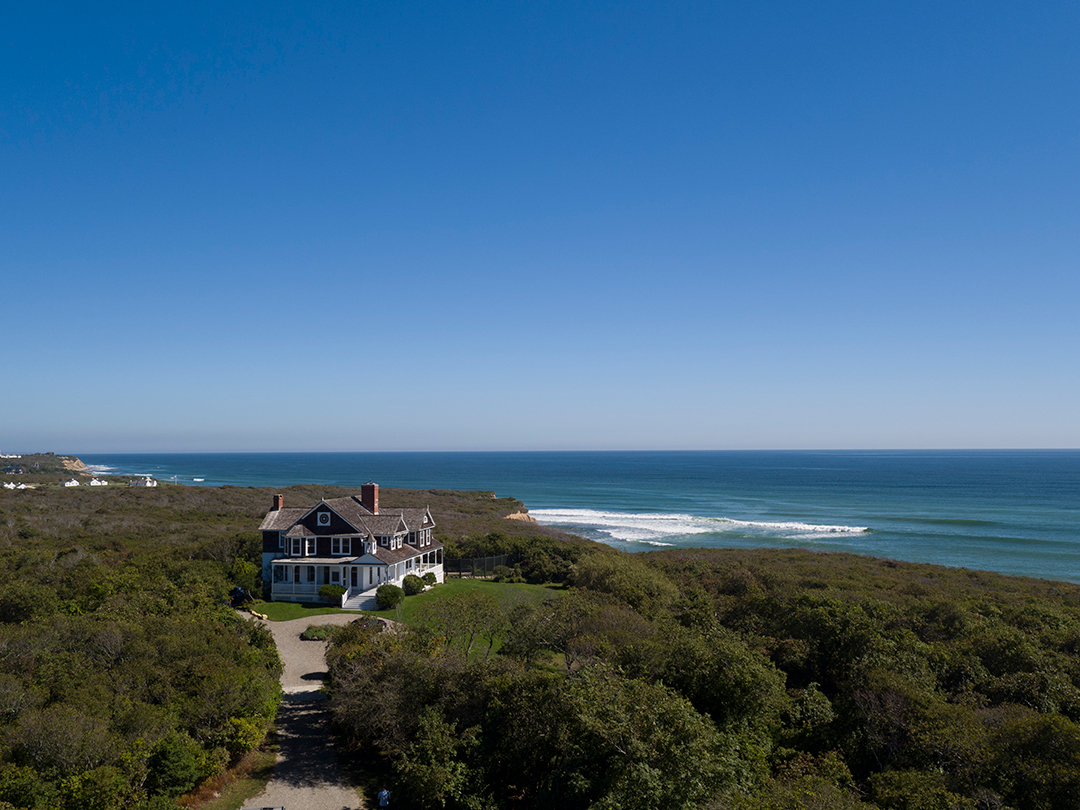 The house features 7 bedrooms and 5 bathrooms spread out over 6,000 square feet and boasts over 900 feet of ocean frontage including a private cove known as “Cavett’s Cove.” The house is sited on the highest point of its 20-acre parcel, which provides unparalleled views.