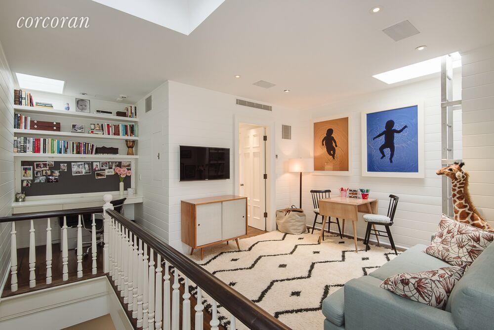 Recently renovated, the 3,336-square-foot home features a brand new kitchen with limestone flooring and floor-to-ceiling casement windows that access the garden. A living room with restored original woodwork and a library/media room with a terrace are found on the parlour floor, which features 11’ ceilings that give it a loft-like atmosphere. The upper levels house the sun-soaked bedroom suites including the master, which has a dressing room large enough to double as a home office. Billed as the “perfect home in Greenwich Village,” the townhouse is located on tree-lined Charles Street, which is the quintessential Village setting close to the shops and restaurants of Greenwich Village.