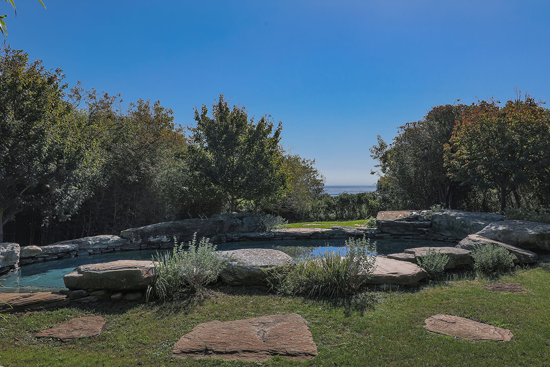 The house features 7 bedrooms and 5 bathrooms spread out over 6,000 square feet and boasts over 900 feet of ocean frontage including a private cove known as “Cavett’s Cove.” The house is sited on the highest point of its 20-acre parcel, which provides unparalleled views.