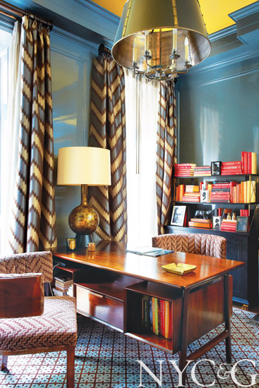 A trained architect with a degree from the University of Virginia, Gambrel is known for his love of exuberant color and boldly patterned textiles and for his work with period homes. He was a perfect choice to bring the sagging 1840s landmark into the 21st century. “When you’re working with one of the townhouses in the Village,” says Gambrel, “you have to take it down to the four brick walls. Inevitably, the wooden floor joists have warped, and you need to replace them with new steel ones. You need a new roof, windows, and doors”—not to mention code-level heating, ventilation, and plumbing systems. In most cases, Gambrel works with a consulting architect. “With a landmarked property,” he adds, “the amount of time you have to spend to get permissions and the number of drawings you have to do is staggering.” It took 18 months to get the permits and another 18 to do the work.