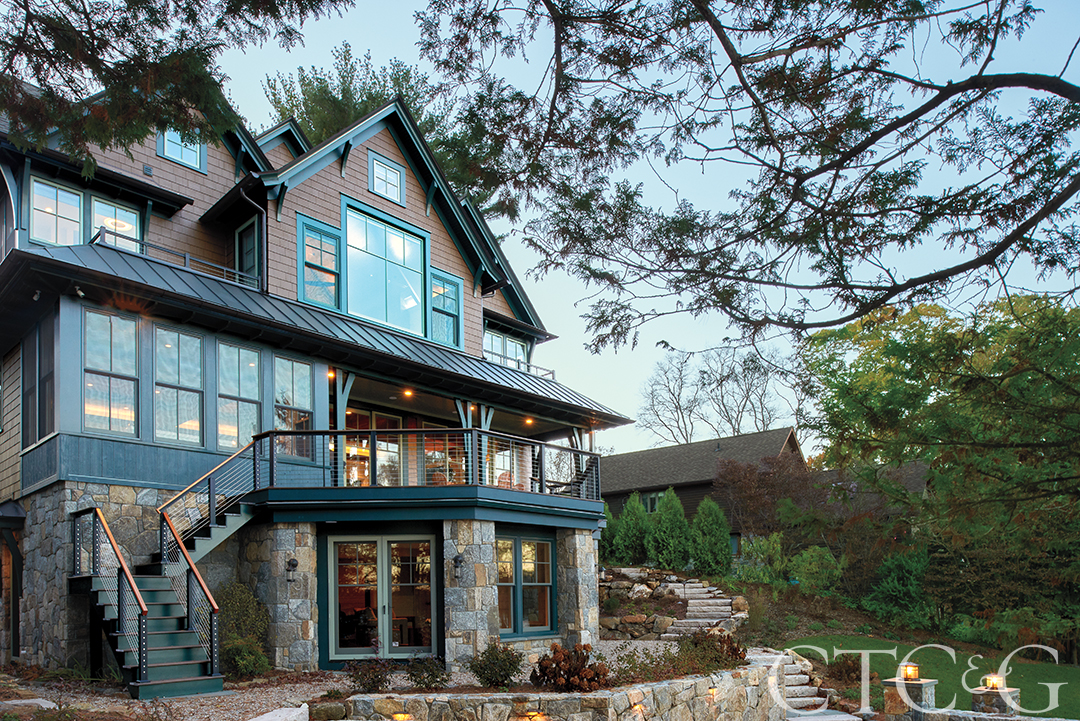 “When we first started coming back, we would stay with family in Trumbull, but as the kids grew that became challenging,” says the wife, noting her husband’s job precipitated the move to Asia. “Then my brother-in-law sent us a picture of a house on a lake that we had never heard of in Fairfield County, and we bought it.”