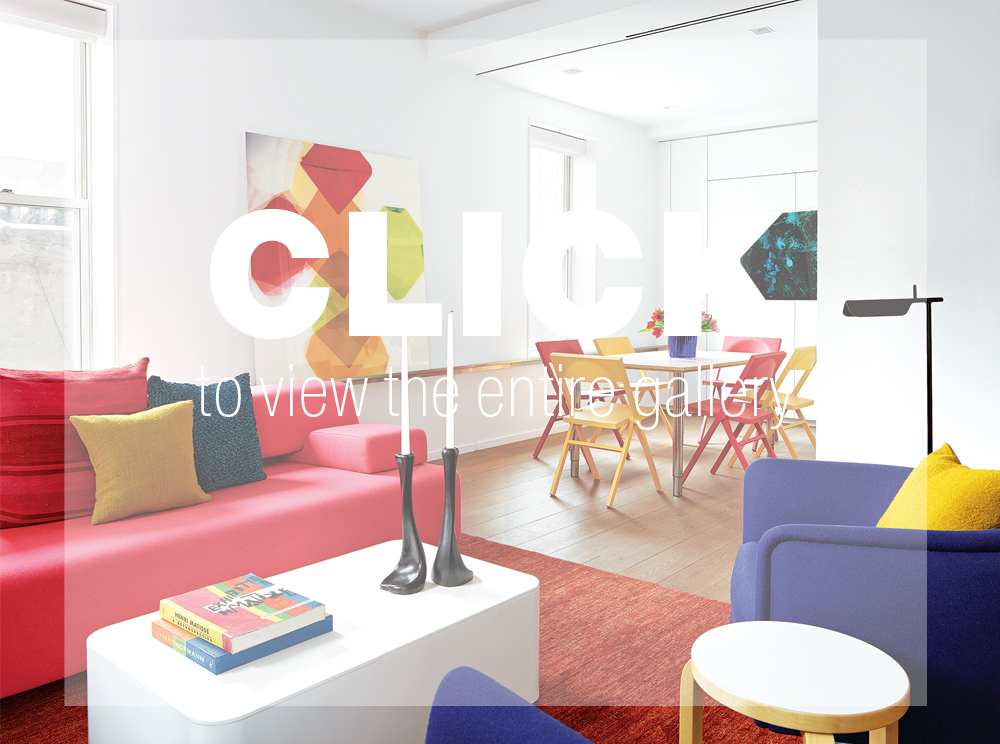 The neutral backdrop gets a colorful kick from seating pieces and textiles in shades of hot pink and primary red, yellow, and blue—similar to the vibrant hues found in Panero’s work. While bold by any account, it’s definitely not the kind of palette typically found on the risk-averse Upper East Side. “Lorenza wanted color to give the rooms character, making the apartment feel less like an art gallery and more like a residence,” Porter says. “It was refreshing to have a client who was so fearless.”