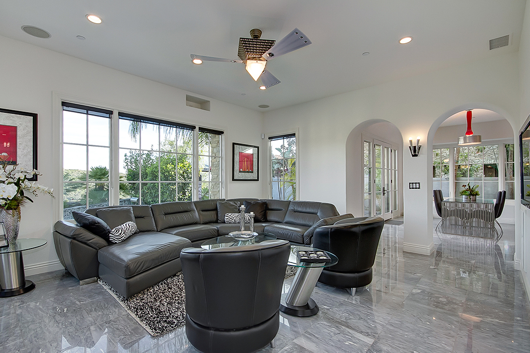 While the exterior has a Mediterranean style, inside the décor is a mix of contemporary and comfort. Clean lines provide sophistication and bright colors reinforce the idea that this house was built for fun.