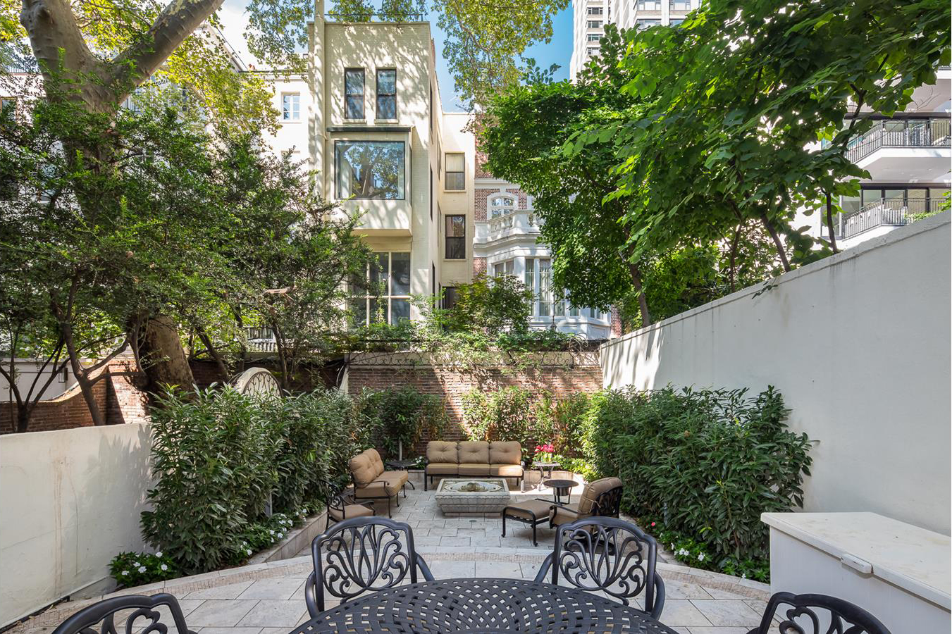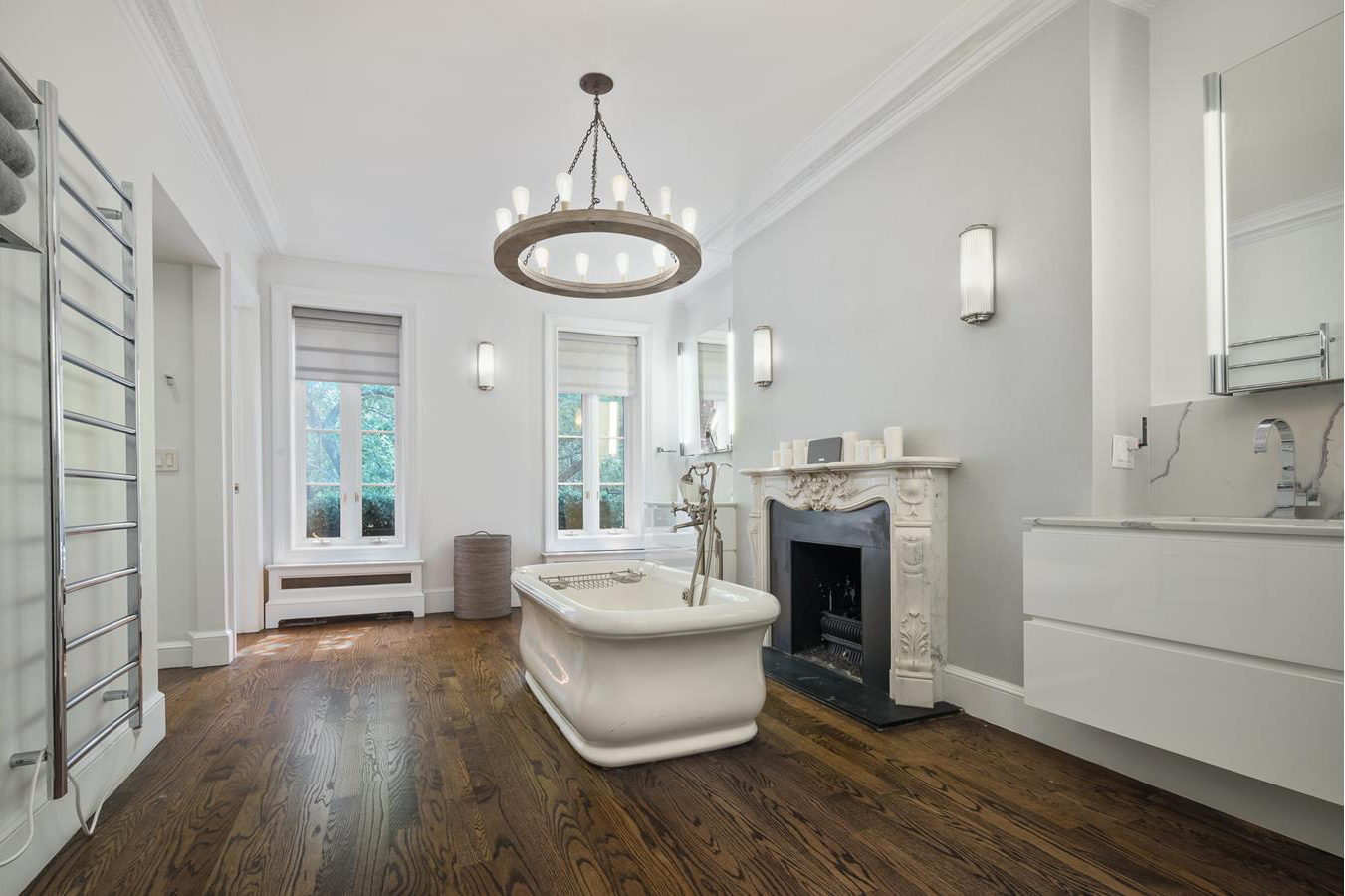 The gracious townhome boasts over 6,900 square feet of interior living space across its 6 levels as well as an additional 1,050 square feet of landscaped outdoor space. The lower levels are home to a glossy chef’s kitchen and dining room that leads to an outdoor patio for al fresco dining. The sunny great room and adjacent library are ideal for entertaining. 6 bedrooms are spread over the upper floors with the master suite occupying the entire third level with its dressing room, luxurious en-suite bathroom and private terrace. The crowning glory of the townhouse is its expansive roof deck, which offers sweeping views of Manhattan as well as an outdoor living room and shower.