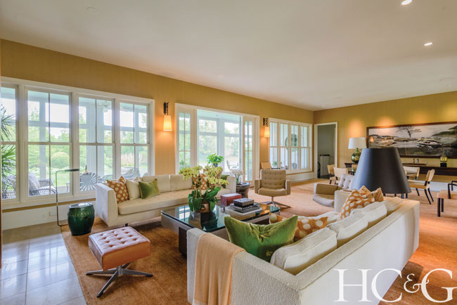 Longview, the 15,000-square-foot hilltop estate in Water Mill, has almost everything money can buy, and then some: nine bedrooms, nine full baths, four partial baths, a double-entry 52-foot-long pool, a pool pavilion, a home theater, a painting studio, and a sunken tennis court, all on 4.3 acres with views of the ocean. At $13.5 million, it’s practically a bargain. (Deborah Srb of Sotheby’s International Realty has the listing.) Designer Tom Fleming, a partner with the late Keith Irvine in Irvine & Fleming for almost 50 years, has a long relationship with the current owners. “I’ve known them more than 30 years, and we’ve done many projects, from office spaces to a home in Southampton,” says Fleming, who complemented the house’s custom-crafted elements with an array of vibrant upholstery fabrics.