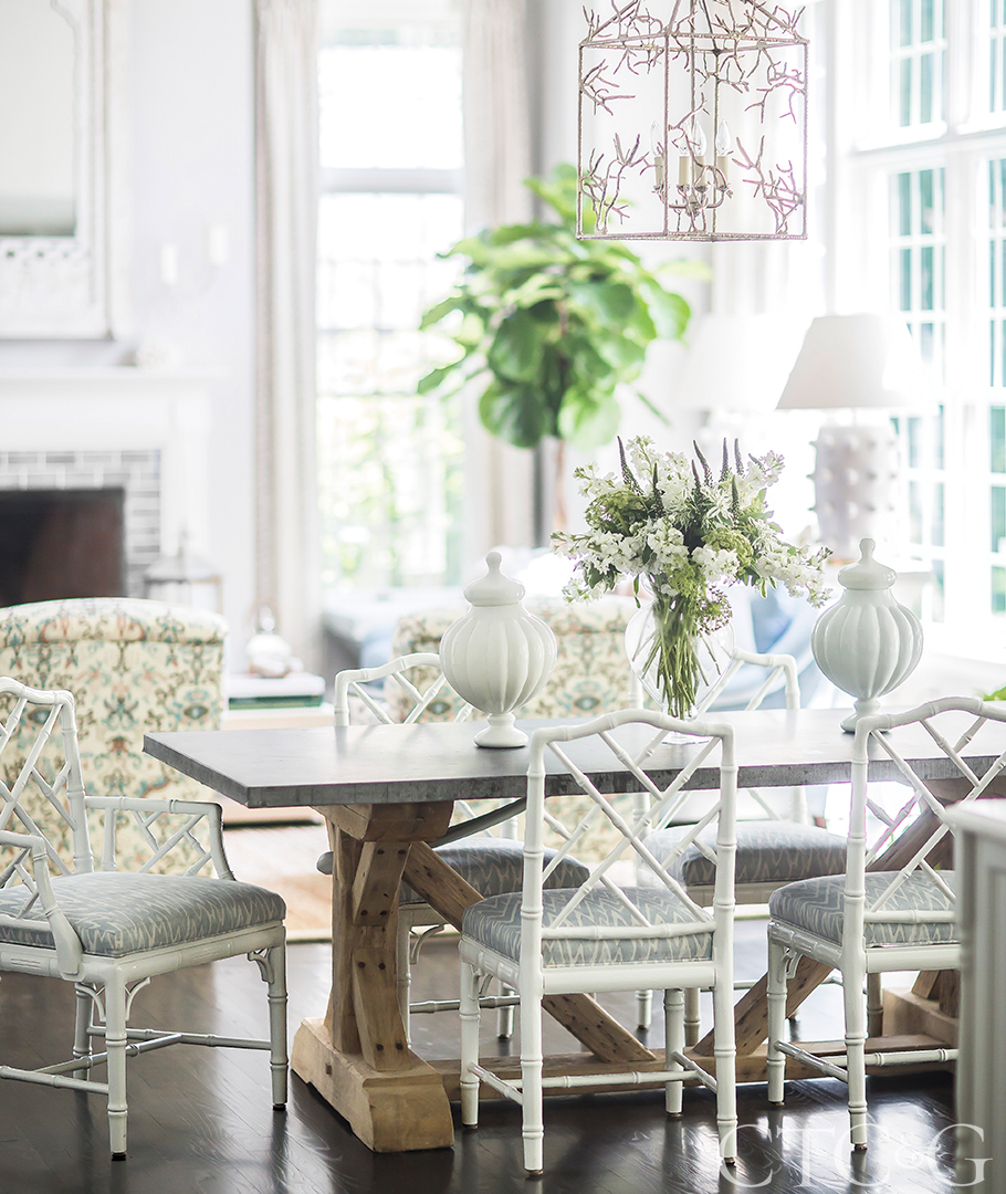 Summers here are ideal for indoor/outdoor entertaining. “We’re out on that porch with the doors open to the kitchen and the family room. The kids can run all over the place, inside and out,” says the homeowner. “Brittany did a great job giving us a weekend place that’s close to the city, but also filled with peace and calm.”