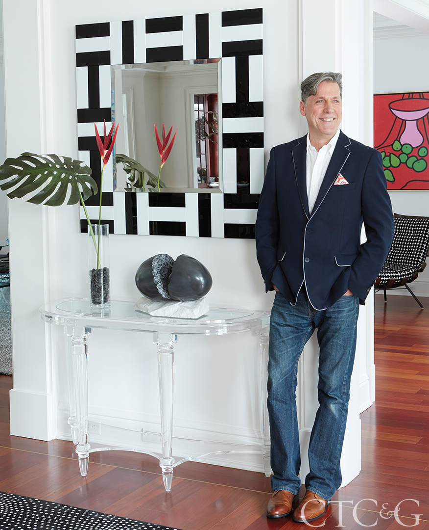 It was the clients’ first time. When they hired Fairfield–based interior designer Ron Marshall to fill the rooms of their spacious Fairfield County residence with notable furnishings, objects and artworks, they knew little about the process of interior design. “I’d be in the living room and suddenly Ron would drive up in his Ford Explorer, open up the back, and pull out sofas, lamps, tables,” the wife recalls. “Ron would bring things over on a trial basis. They never left. What he brought in, I liked right away.”
