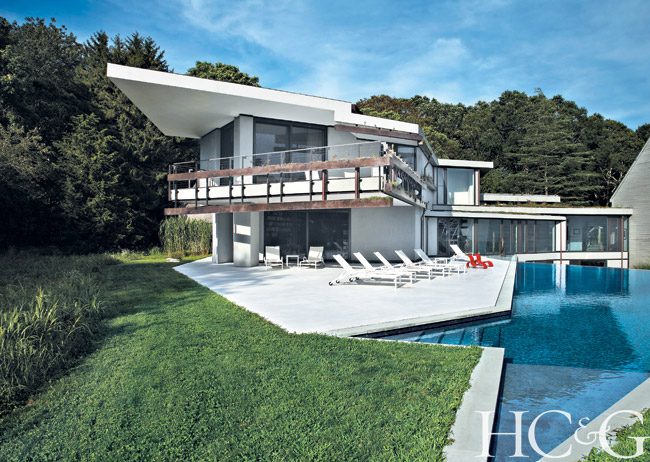 Their prize: a simple, uncomplicated house in the woods of Wainscott, where they spent many weekends over several years, feeling the need to settle in and get the lay of the land before doing any major surgery. When they were ready for something different, they hired architect Alfredo De Vido to build them a new house, and later changed it up once more with the help of East Hampton–based architect Maziar Behrooz of Maziar Behrooz Architecture, who created a striking triangular addition without diminishing the humble lines of the existing structure.