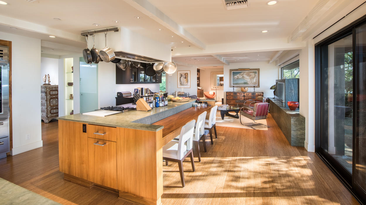Actress Jane Fonda and music producer Richard Perry have listed their contemporary home in Beverly Hills for $12.999M with Coldwell Banker Previews International’s Jade Mills and Valerie Fitzgerald, the LA Times reports. Perry and Fonda have owned the home for 5 years; they bought it in 2012 for $7.3M. It is sited on a .75-acre gated property in the Trousdale Estates area and was built in 1961. 7,500 square feet of interior living space are spread over multiple levels, all of which are accessible via a glass elevator in the center of the home. The updated chef’s kitchen features an oversized island and bi-fold glass doors that open to a terrace. Other notable features include a recording studio, media room and diner-style wet bar. There are 4 bedrooms and 7 bathrooms total, and the master suite features a separate sitting room and office. Outside, there is a solar-heated pool, a covered patio, a meditation garden and a fire pit.