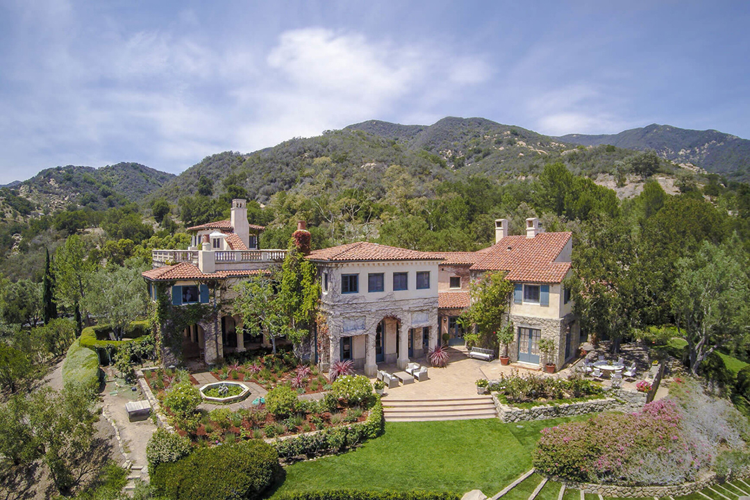 Called Villa Santa Lucia, the house was designed by noted Santa Barbara architect Barry Berkus and echoes the architectural style of Tuscany’s famous hilltop villages. Stone columns, bridge beam ceilings, oak floors and arch-top French doors add to the old world elegance. The first level is accessed by a double-height entry hall, which leads to the spacious living and dining areas. Beyond the entertaining spaces lie a grand eat-in family kitchen and a study that leads to a secret hedged garden. The second level houses the master suite along with 3 additional guest suites, while the top floor is occupied by a unique Tower room that could serve as a study or meditation retreat.