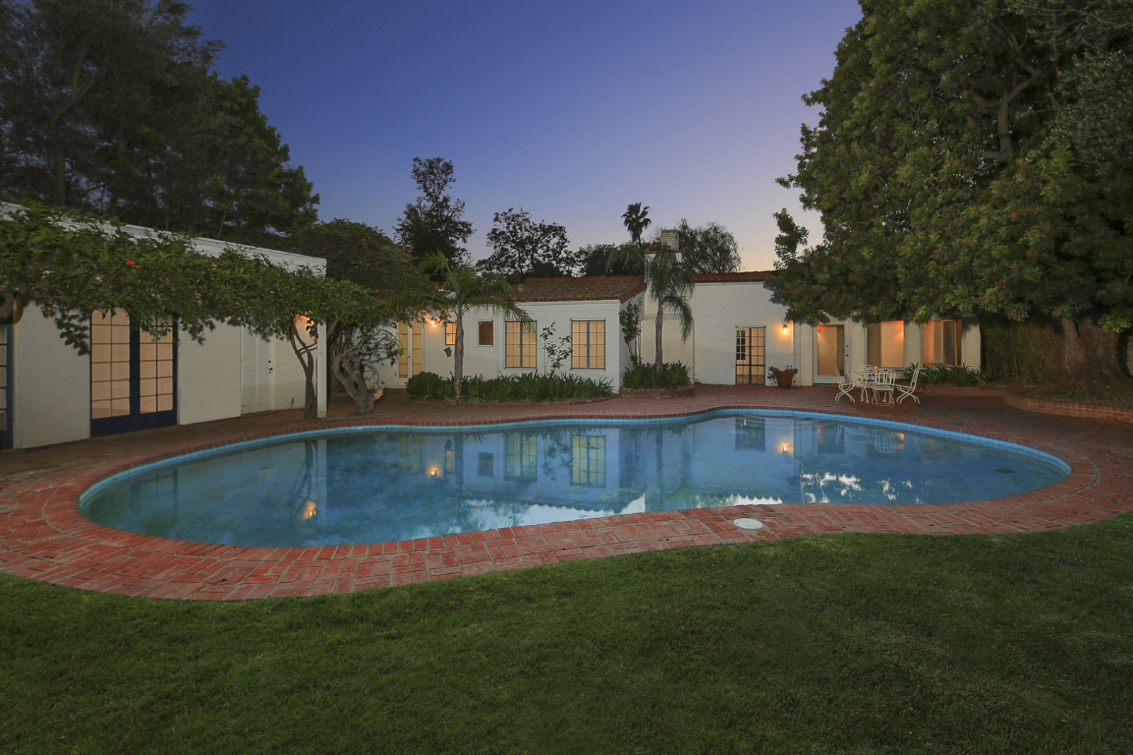 The 2,624-square-foot Hacienda-style home sits behind tall gates on a quiet cul-de-sac in the coveted Helenas enclave of Brentwood. Though it’s had a handful of owners and gone through a few expansions and updates since Monroe’s time, the home maintains original architectural details including beamed ceilings, terra cotta tile floors and casement windows. The house sits on the largest parcel in the Helenas and the property includes a spacious yard, pool and citrus orchard.