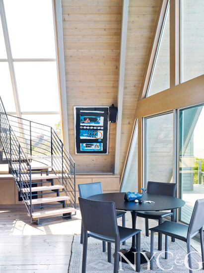 Several times a day at our home in Fire Island Pines, the same scene plays out. Visitors, in knots of twos or threes, stand unannounced in our entryway, craning their necks to get a glimpse of the suspended staircase dangling like sculpture above the 18-foot-high living room. First, we hear whispers (“Don’t run away”; “Get back over here!”), before the boldest peeps through the glass, “Excuse me, but we’ve known this house since we were little, and we’ve been watching it change the past few years, and well . . . .” At this point, my partner, Doug Harris, and I usually invite them in. Even before we purchased the house, it was a bit of a curiosity to us, too, so we understand where they’re coming from.