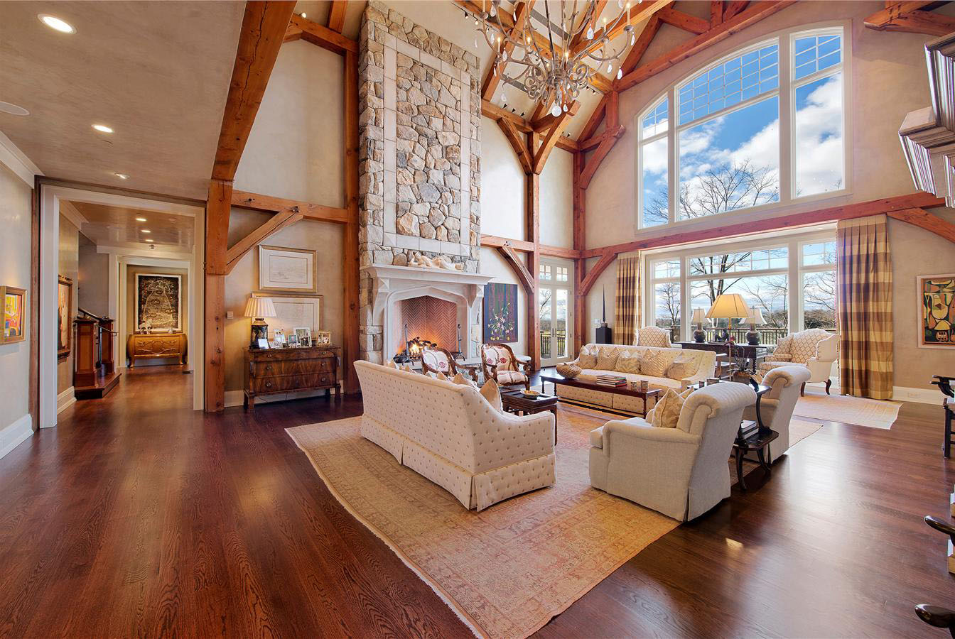 In Ridgefield, Double H Farm sits on a high, 87-acre spread along the New York state border. The circa-1765 property was once owned by a Canadian railroad tycoon, who turned an existing dairy farm into a world-class equestrian facility, now offering two barns with more than 40 stalls, four grooming and wash stalls, staff apartments, a riding ring and a jumping course. The owners made a name for themselves with their stallions, jumpers and hunters. But even for non-horse-fanciers, Double H appeals with its 14,5000-square-foot, green-technology main house. The living room, for instance, has 38-foot-high ceilings, a massive limestone fireplace and exposed barn-beam scaffolding. The master suite is equally grand with its 20-foot domed ceilings, another fireplace, a marble bathroom and even a safe room. Additional amenities include a golf room with a simulator, a wine cellar and mahogany decks with stone fire pits. Sally Slater of Douglas Elliman Real Estate represents the listing (price upon request).