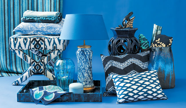 Namibie, an indigo linen, is a blue-hued nod to tribal motifs, $260/yd., at Pierre Frey, 979 Third Ave., 212-421-0534.