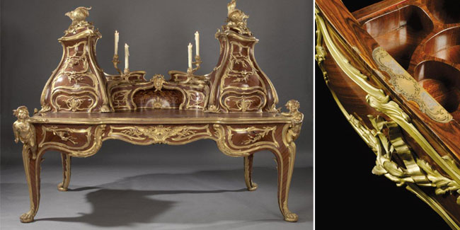 Shoppers who think bigger is better had wonderful choices at this year’s spring show of the Art and Antique Dealers League of America. Le Grand Bureau, a “Magnificent Sculptural Writing Desk and Accompanying Chair” which took the Gold Medal at the 1900 Paris Exposition Universelle, was the centerpiece of Charles Cheriff Galleries’ display. Carlton Hobbs had mounted on the wall an unusual 6-by-8-foot 1770’s picture of food servants pieced from Valencia tiles; and Mary Helen McCoy brought up from South Carolina a 9-foot high French Provincial armoire.