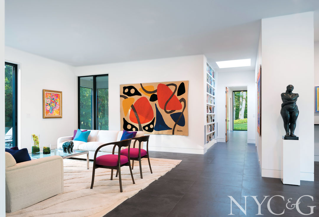 This single-story house in Westchester County is a repository for a notable collection of modern art—and a work of art in itself. Architect Carol Kurth incorporated generous swaths of indigenous stone and cedar, along with glass, to create a home that appears seamless with its natural setting, and also added elegant horizontal overhangs that foster a passive solar effect. Judge Sandra Nunnerley comments on the “good massing of architecture” that makes for a “nice and clean” residence.