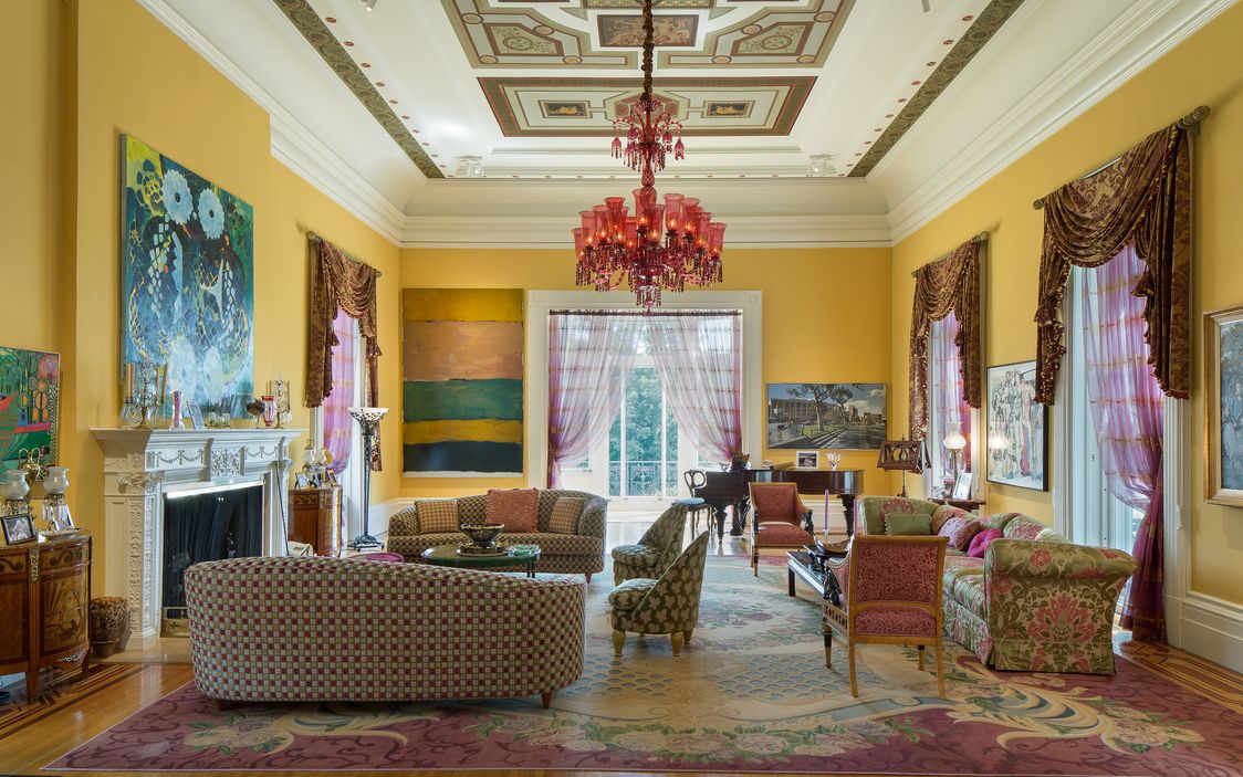 The dining room has a gold-leaf tracery ceiling and gold-leaf walls.