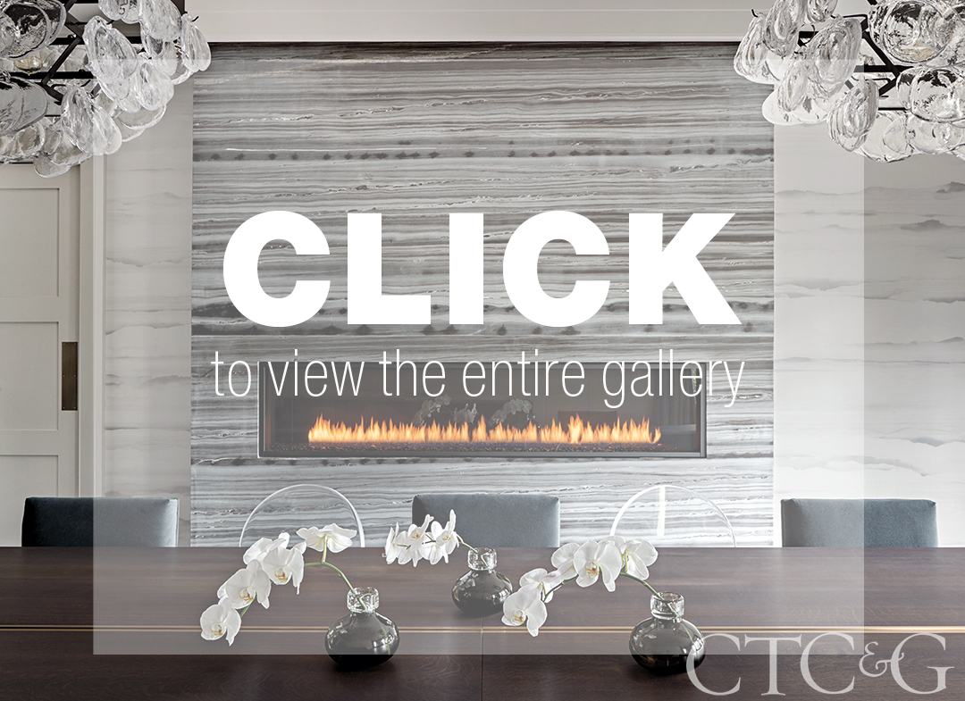 The marriage between the two architectural styles is on display in the dining room, where a rectilinear gas fireplace is set into a floor-to-ceiling stone monolith; in the kitchen, where traditional molding anchors the rift-oak flat-slab cabinetry; and in the back of the house, where a black steel staircase floats down to the mudroom. “We didn’t want an abrupt transition from traditional to modern,” says McClung. “Instead, we took the modern pieces and inserted them within traditional elements.”