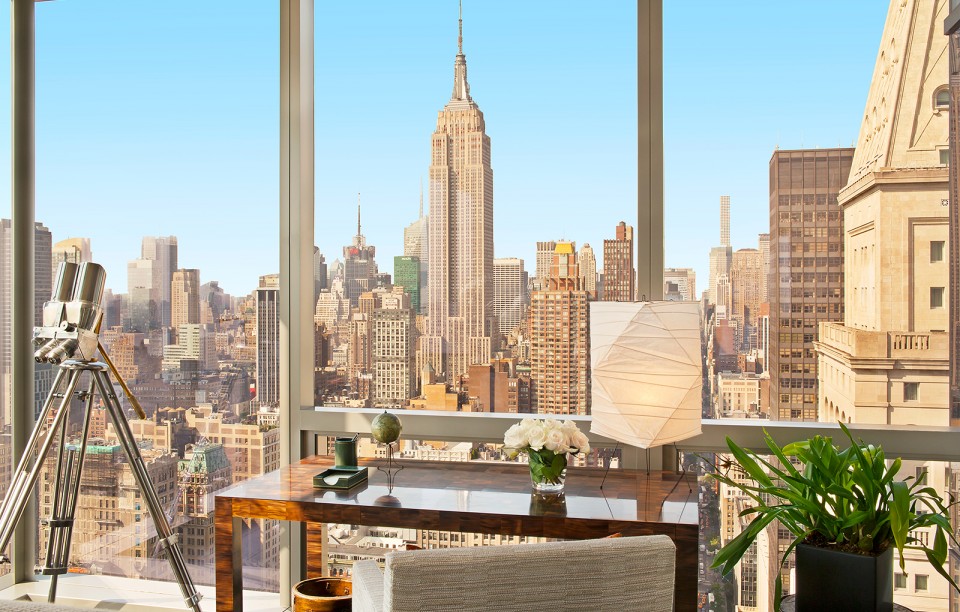 The 3,300-square-foot, 3-bedroom, 3.5-bathroom apartment boasts floor-to-ceiling windows for iconic New York City views of the Empire State Building, One World Trade and the Statue of Liberty. The décor is stylishly restrained and the listing touts the “vastly superior floor plan,” which Peter Marino designed to allow for a media room/den that can also be easily converted to a fourth bedroom.