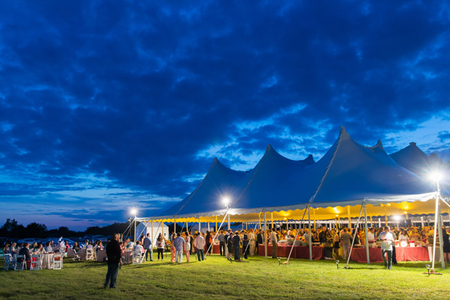 During July and August all over the Hamptons rising from fields, lawns and beachfront properties, glistening white tents made of sailcloth, their canopies artfully draped over high frames soaring to multiple peaks, appear like East End’s greatest thematic sculpture show. As you drive along the hedgerow-laden roads, you spot the majestic tents and envision that each will be the scene of a forthcoming charity or cultural event.