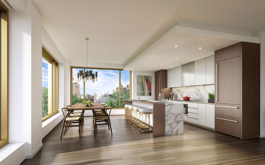 Sales are open at 75 Kenmare, a luxury building in NoLIta that boasts a unique amenity: Lenny Kravitz designed the interiors. The rock ‘n roll icon’s design firm, Kravitz Design, was inspired by NoLIta’s “eccentric downtown vibe” for the design of the units, reports Curbed, and outfitted them in a muted neutral palette that allows high-end finishes such as Calacatta marble countertops, white oak flooring and titanium Travertine to shine. Andre Kikoski Architects is the firm behind the 38-unit building and 6 of those units are currently available with Douglas Elliman’s Fredrik Eklund and John Gomes. Prices vary from about $1.7M for a 1-bedroom with a private terrace to $5.9M for a 1,800-square-foot corner unit.